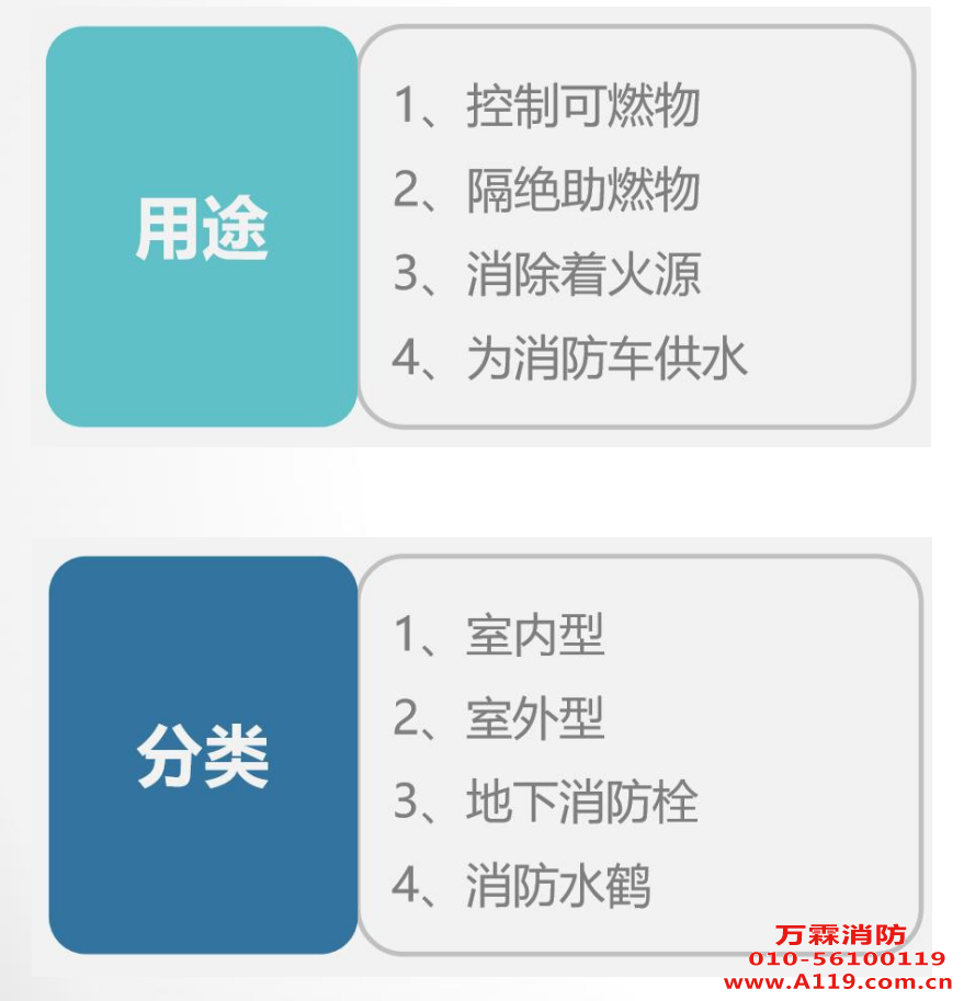 现有的消防栓主要供消防车从市政给水管网或室外消防给水 管网取水实施灭火,也可以直接连接水带、水枪出水灭火