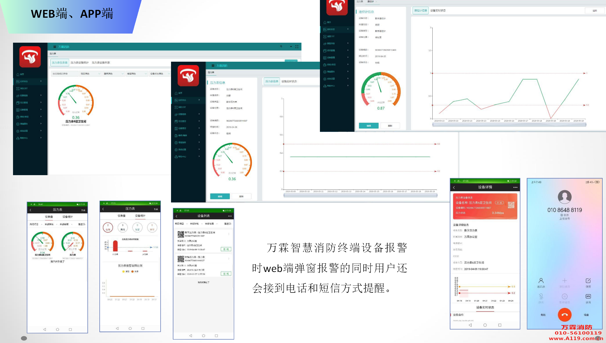 通过 NB-IOT 网络将现场采集 信息上传至地方政府消防平台或万霖消防物联网监控平台,运用平台系统软件 对消防栓的监测信息进行处理、分类、统计和分析,利用 GIS 技术将消火栓分 布情况、消火栓基本信息、各种监控信息集成在一个平台上供用户查询和使用, 从而达到日常消防栓全面管理和战时合理规划